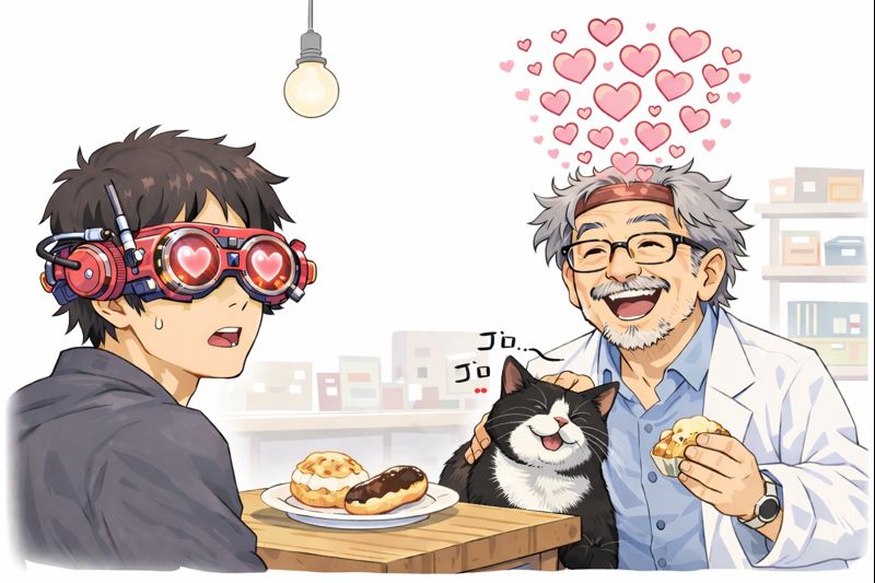 けっさくや、ああ、傑作や、すごい、にゃんたさんは本当に思いもつかない発想をしますな、てんさいや、