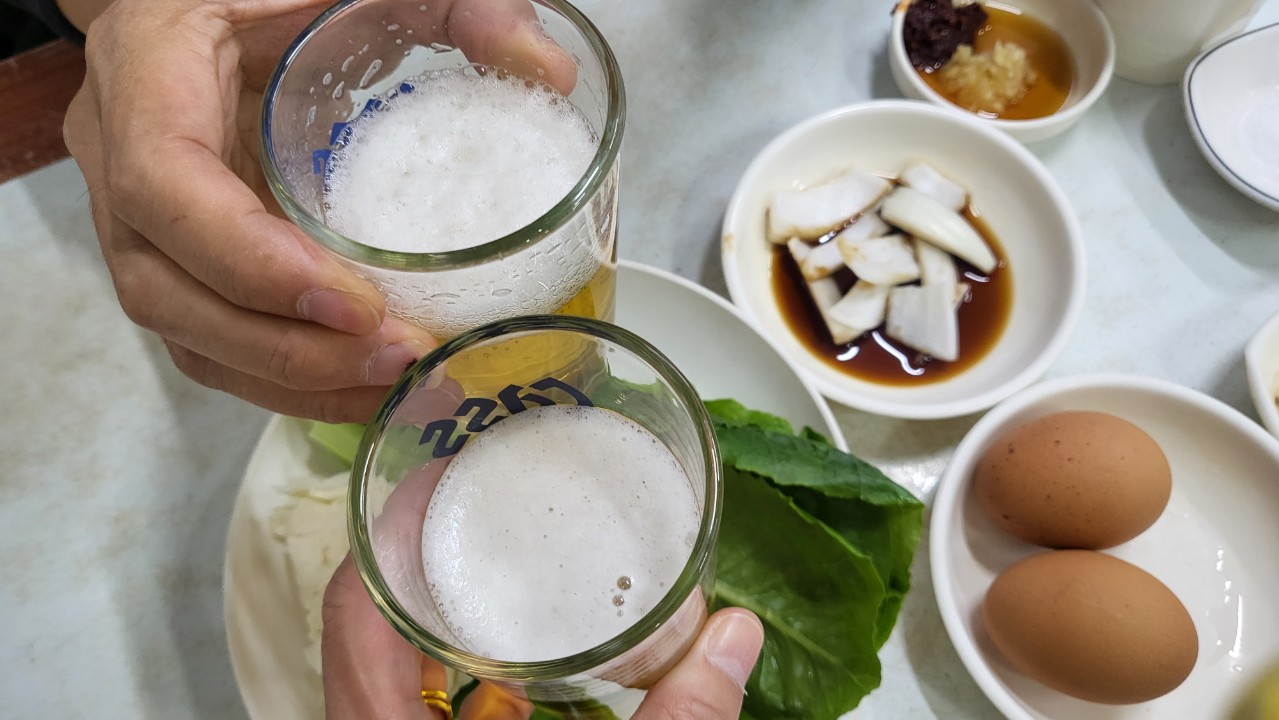 地元のご老人たちでにぎわう、ふるい食堂で。