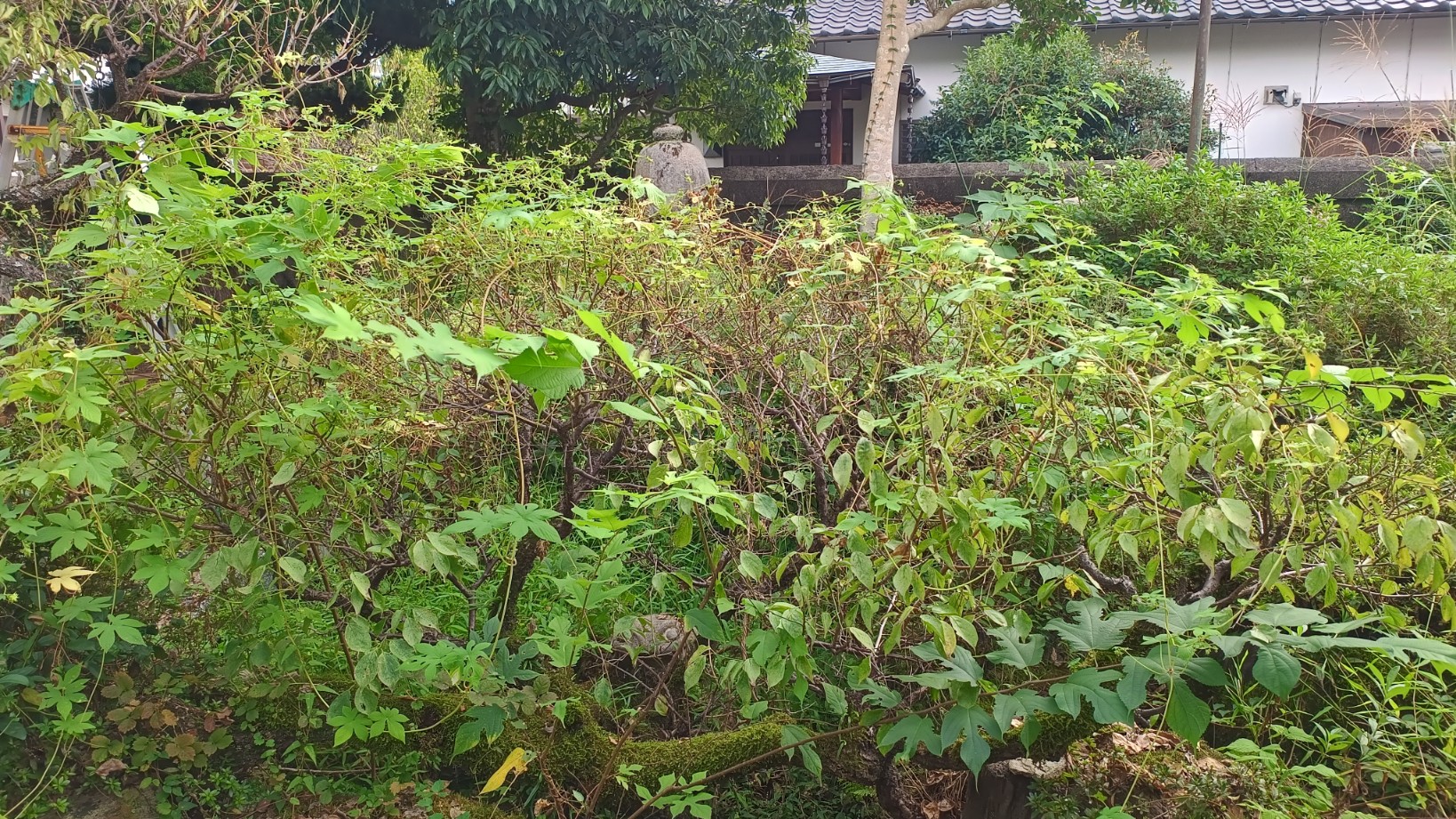 「おまえなー、庭がジャングルやないか―。ちょっとずつでも、きれいにしたらどうかニャー!」