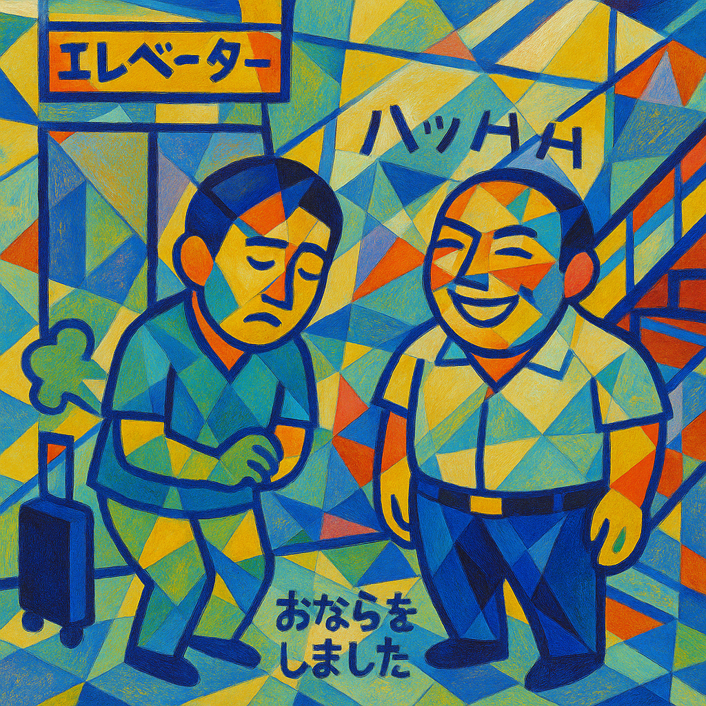 そして、階段の踊り場で、わたしは、音を立てずに、こっそり、おならをしてしまったんですね。