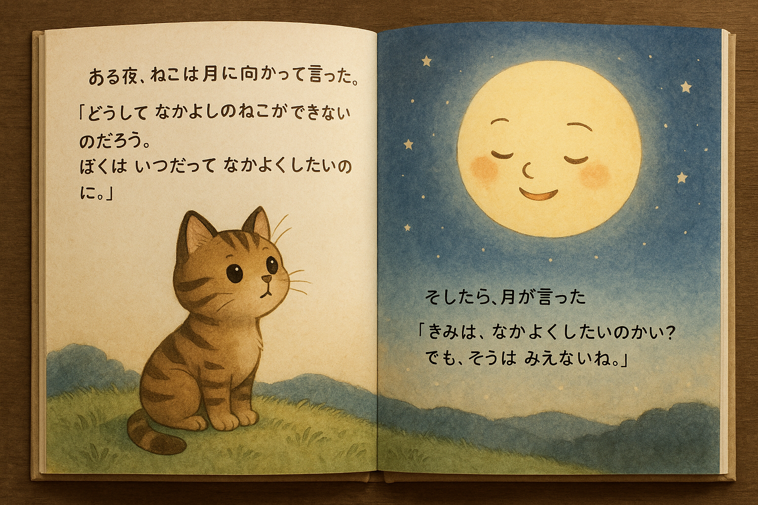 そして、出会ったねこが、なかよくされるねこだったら、なかよしがうまれる。